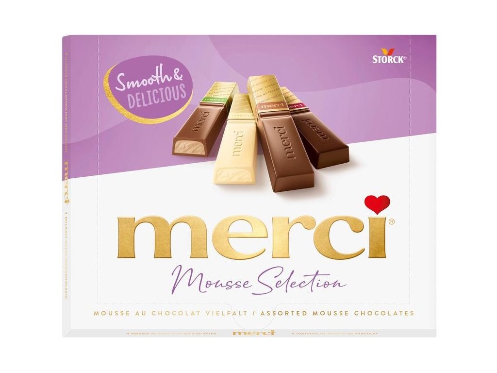 Merci Mousse au Chocolat obsahují vysoký podíl kvalitní čokolády a máslové náplně bez laciných náhražek. Nenajdete v nich agresivní sladkost, umělé příchutě ani laciné tuky – jen jemně zpracované ingredience a poctivou německou preciznost, která je zárukou kvality.